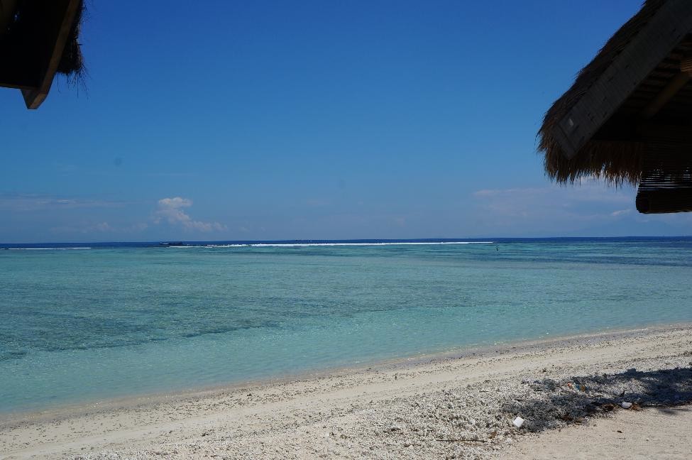 Clear turquoise water Published May 18, 2014 at 975 × 648 in Gili Air – Another Island We Never Wanted to Leave Next → The water was turquoise and shallow all the way around the island. The waves are breaking out by the reef, which provides excellent snorkeling opportunities (esp the west and northeast reefs)