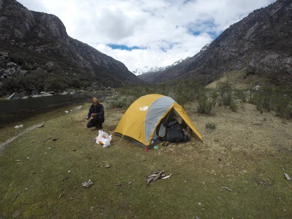Camp Published October 13, 2014 at 975 × 731 in A Fishing Story in the Peruvian Andes ← Previous Next → Our camp and the mountain range that served as our aiming point on the way in